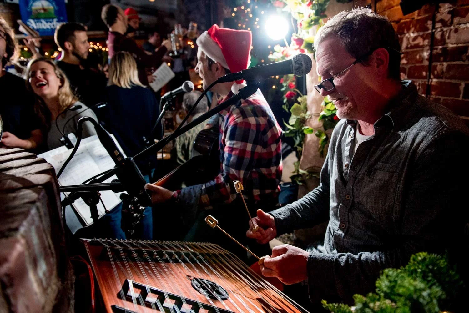 Musically led by Erica Mancini (from the JaJaJas) on Accordion and Grand Piano and Sylvester Schneider on the hammered Dulcimer, we all sing together and experience that magical atmosphere from silent night to the 12 days of Christmas and 5 golden beers